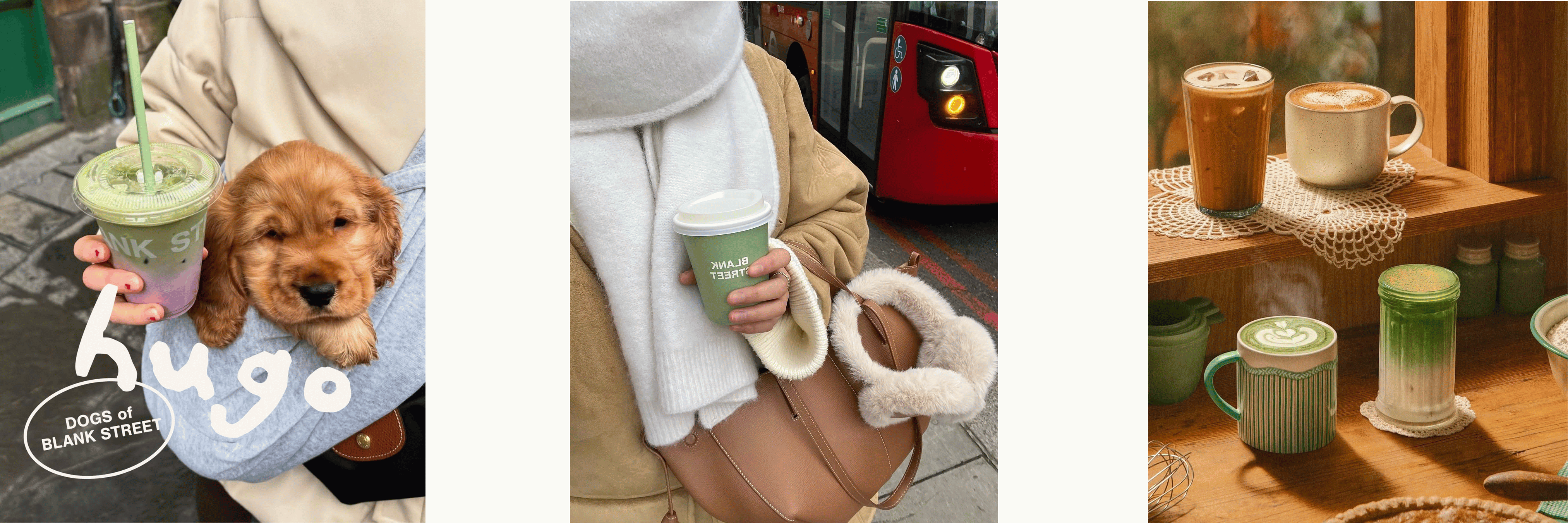 Blank Street consistently places their drinks inside emotionally recognizable moments: commuting, hands wrapped around a warm cup, seasonal kitchens, morning walks, everyday life.